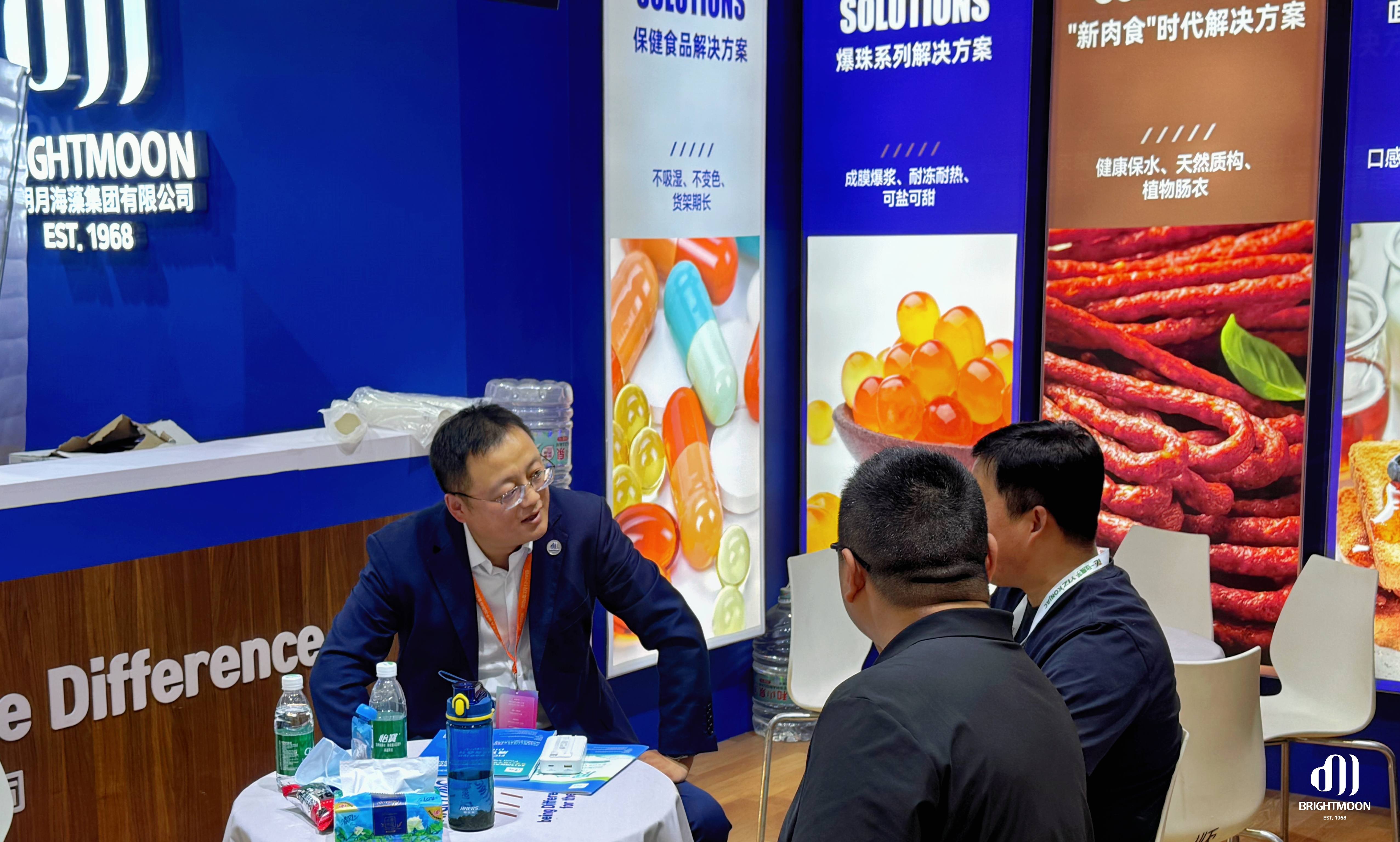 展會期間,明月展位始終熱度不減。專業(yè)團隊以產(chǎn)品展示、技術(shù)交流和場景化示范,向現(xiàn)場觀眾集中呈現(xiàn)“海藻功能原料×食品創(chuàng)新”的前沿趨勢,吸引了大量行業(yè)伙伴駐足探討,共同尋找下一代食品創(chuàng)新方向。